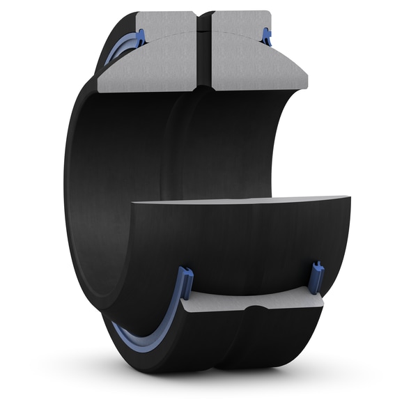 У этих радиальных сферических подшипников скольжения комбинация контактных поверхностей скольжения сталь/сталь и двухкромочные контактные уплотнения с обеих сторон. Подшипники требуют технического обслуживания и могут повторно смазываться через смазочные отверстия и кольцевую канавку на обоих кольцах. По сравнению с серией GE, у них более широкое внутреннее кольцо и больший наружный диаметр, что увеличивает значения грузоподъёмности и углов наклона.